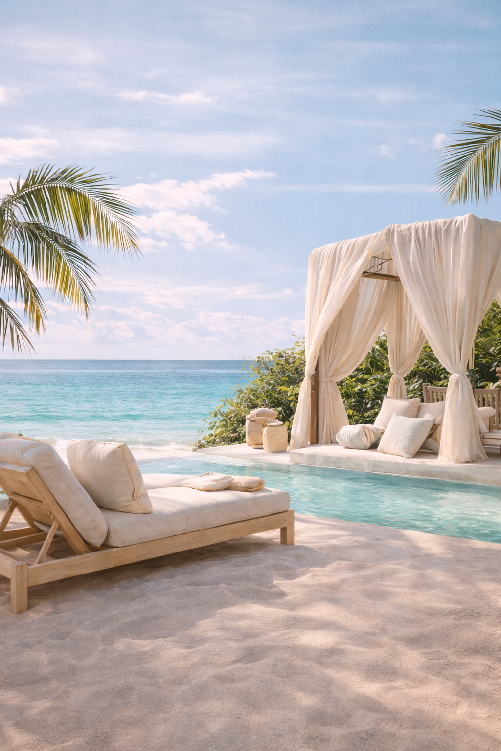 A luxury island retreat centered around living with intention, gentle exploration, and tranquil renewal in a serene ocean setting.